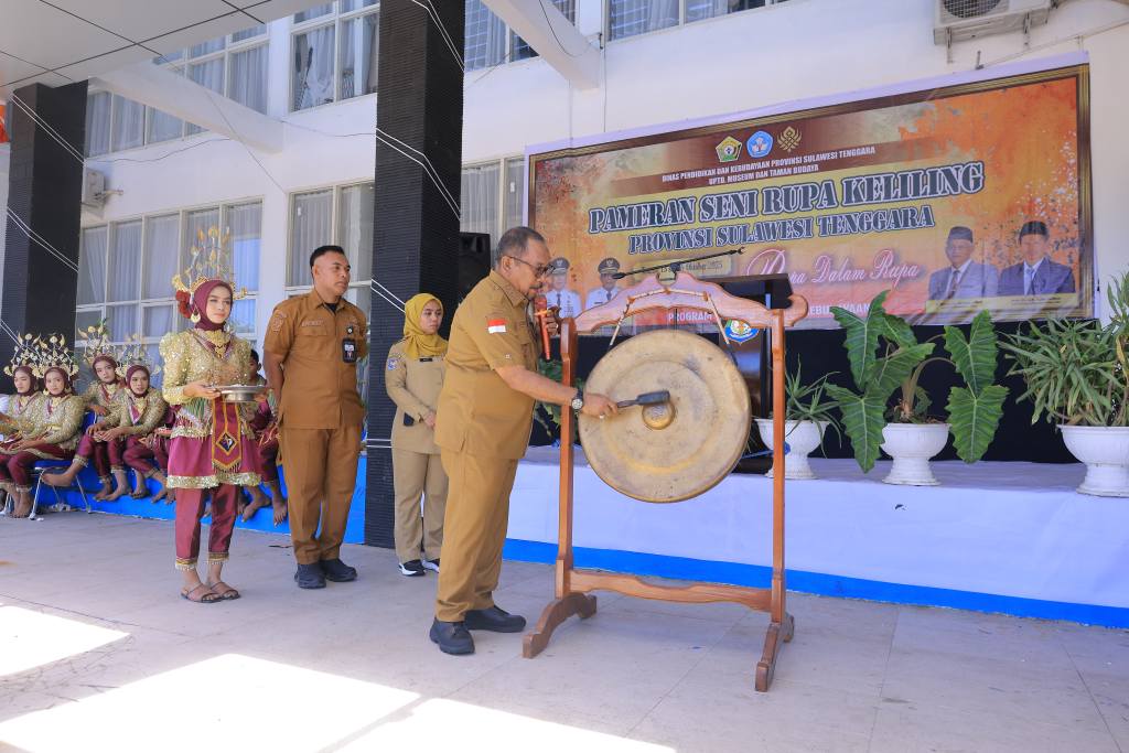 BOMBANA, URBANTALK.ID – Suasana Gedung Perpustakaan Daerah Kabupaten Bombana, Senin (13/10/2025), terasa berbeda dari biasanya. Ruangan yang biasanya dipenuhi deretan buku, kini berubah menjadi galeri penuh warna, tempat puluhan karya seni rupa terpajang indah. Semua mata tertuju ke satu momen penting — pembukaan Pameran Seni Rupa Keliling Sulawesi Tenggara 2025 yang mengusung tema “Rupa dalam Rupa”.