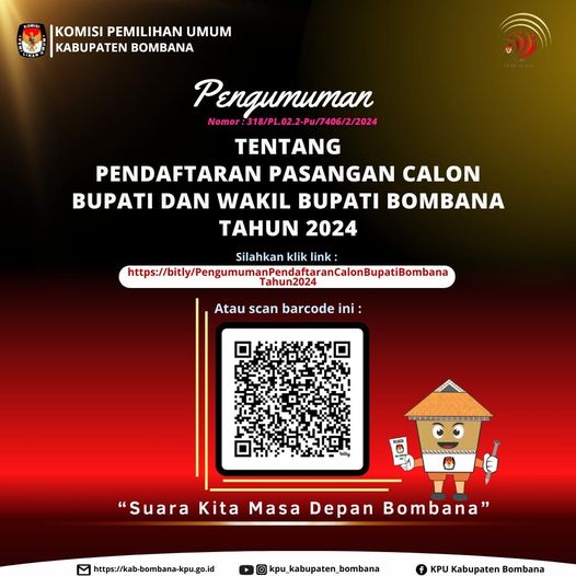 untuk informasi lebih lanjut silahkan klik link pengumuman pendaftaran calon bupati bombana 2024.pdf – Google Drive