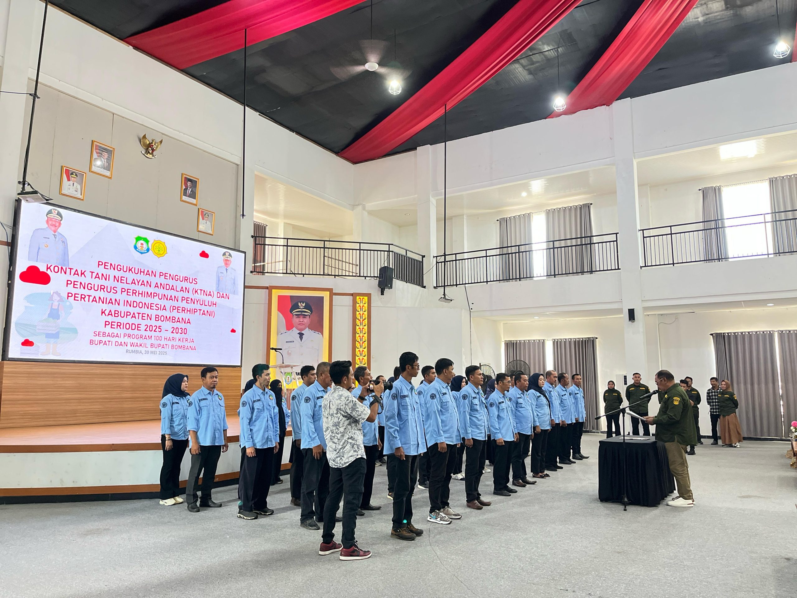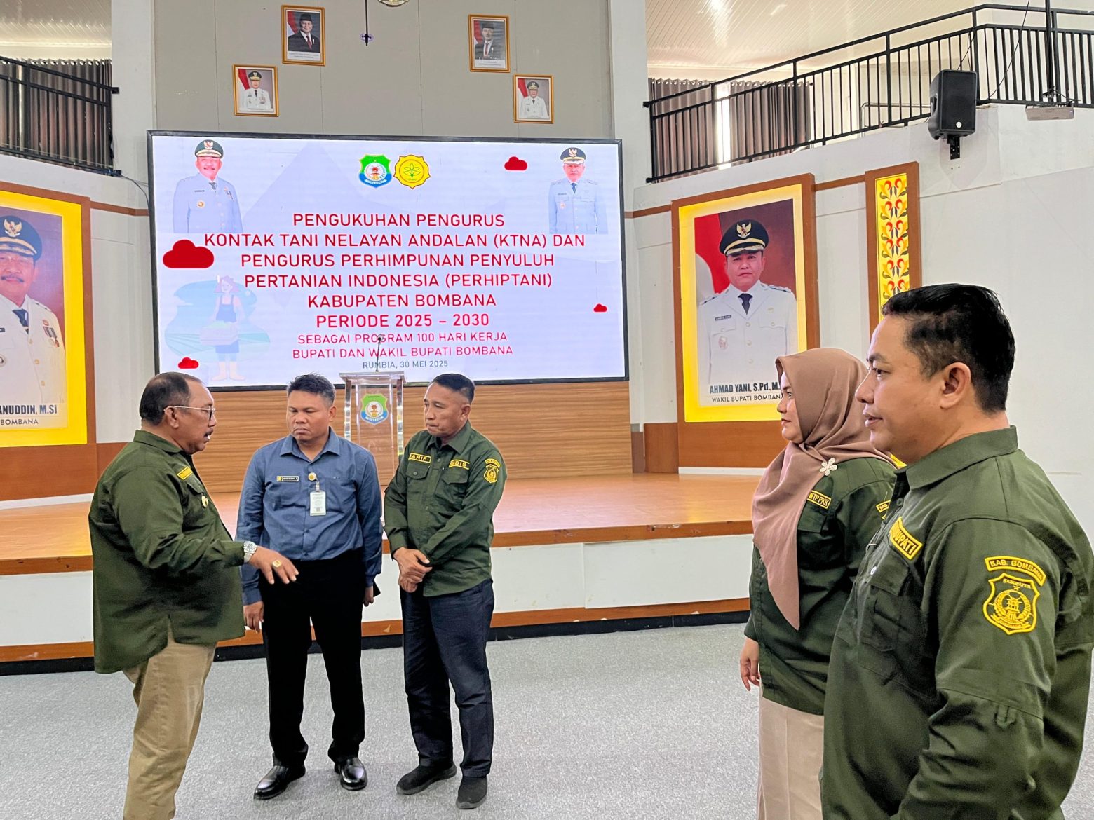 Urbantalk.id | Bombana – Bupati Bombana, Ir. H. Burhanuddin, M.Si secara resmi mengukuhkan pengurus Kontak Tani Nelayan Andalan (KTNA) dan Perhimpunan Penyuluh Pertanian Indonesia (Perhiptani) Kabupaten Bombana Masa Bakti 2025-2029 dalam sebuah seremoni yang berlangsung di Aula Tanduale, Kantor Bupati Bombana, Jumat (30/5).