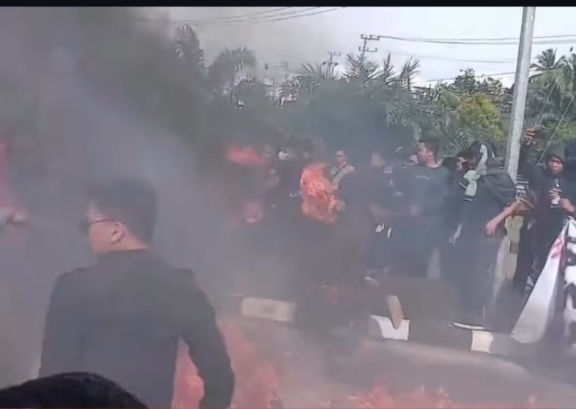 Massa Aksi yang terbakar akibat bensin menyebar di kerumunan massa aksi | Sumber foto rilismedia