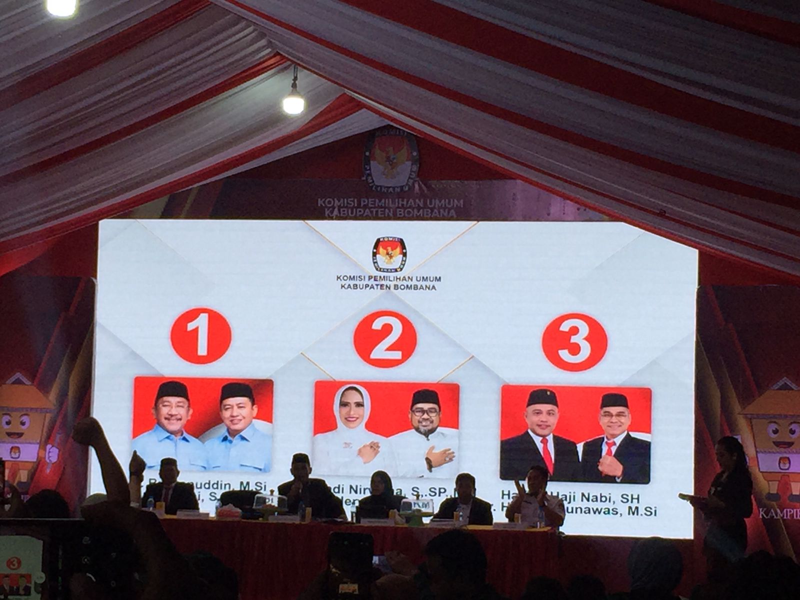 Dari 3 kandidat itu diantaranya Pasangan calon Ir. H. Burhanuddin, M.Si – Ahmad Yani, S.Pd., M.Si mendapatkan nomor urut 01, sedangkan pasangan calon Andi Nirwana Sebbu – Heriyanto, SKM mendapatkan nomor urut 02 dan pasangan Hasrat Haji Nabi, S.H – Ir. Rifai Gunawas, M.Si mendapatkan nomor urut 03.