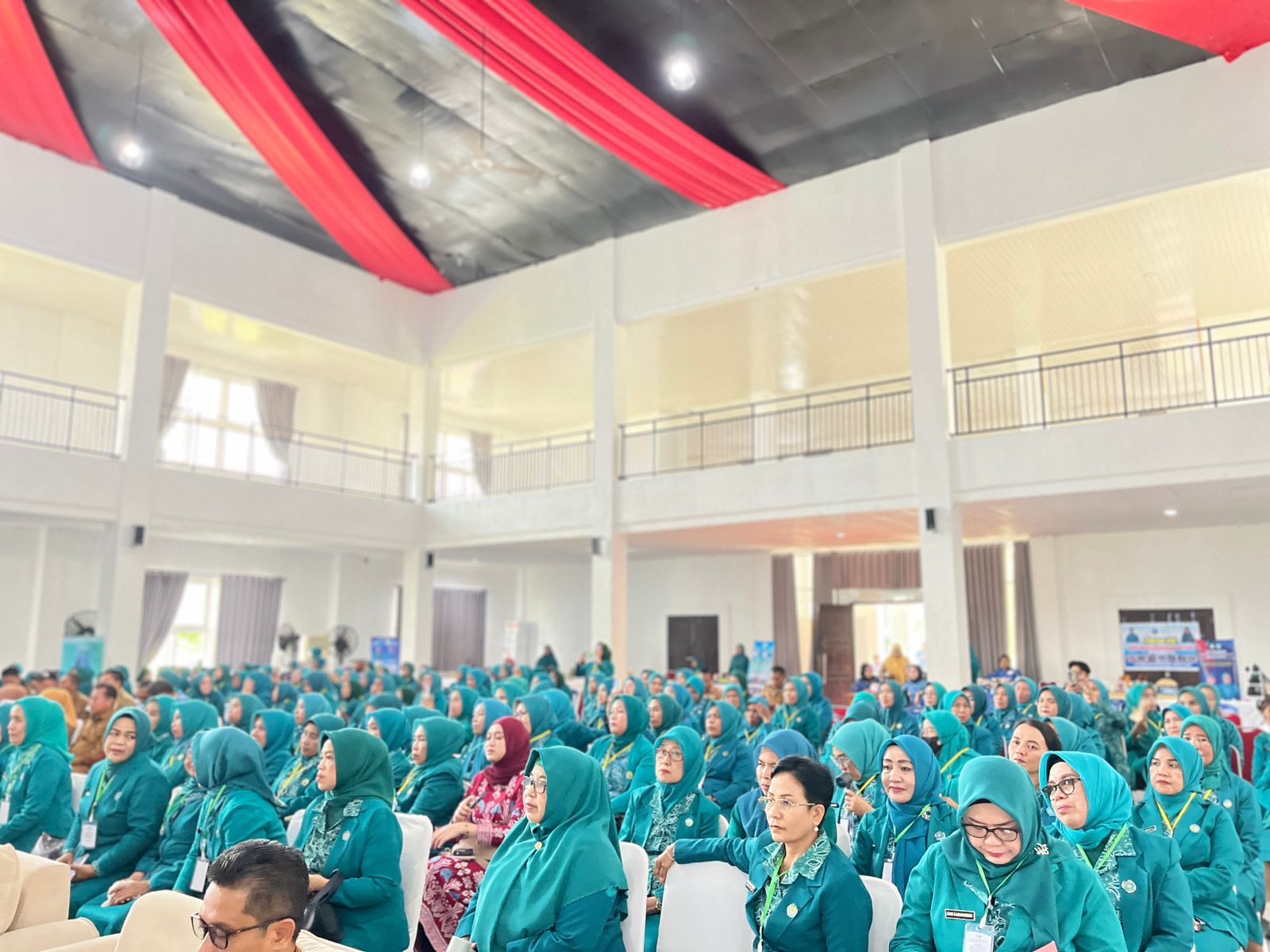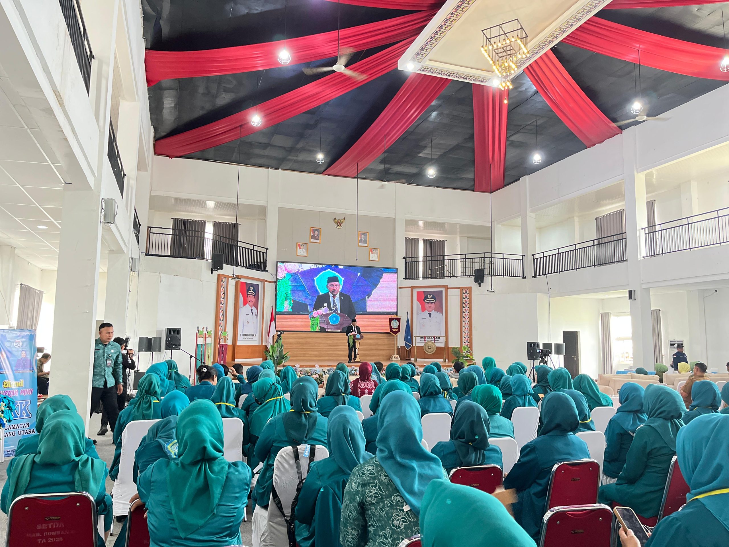 Pengurus PKK di 22 Kecamatan turut hadir memeriahkan peringatan Hari Kesatuan Gerak (HKG) PKK ke 53 Tahun di Aula Tanduale | Foto AsbarBupati menekankan bahwa PKK memiliki peran penting dalam menggerakkan masyarakat, terutama dalam sektor pemberdayaan keluarga, peningkatan ekonomi produktif, kesehatan, dan pendidikan.