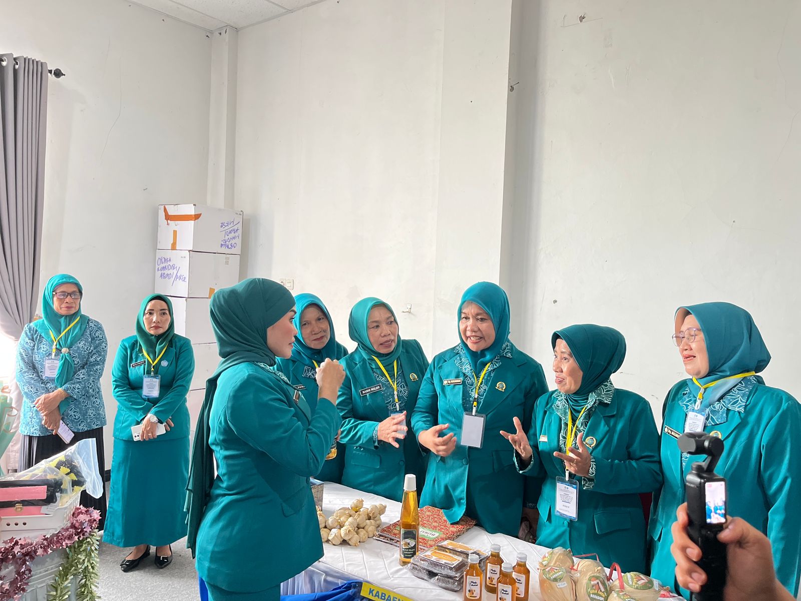 Ketua TP PKK Kabupaten Bombana, Hj. Fatmawati Kasim Marewa Saat Menanyakan Produk Minyak Lokal dari Kec. Kabaena | Foto AsbarSelain pameran, kegiatan HKG PKK ke-53 turut diisi dengan diskusi pembangunan yang menghadirkan narasumber Kepala Bappeda Kabupaten Bombana dan Kepala Dinas Pemberdayaan Masyarakat dan Desa (PMD) Bombana. Diskusi tersebut membahas strategi peningkatan kesejahteraan masyarakat melalui sinergi antara pemerintah daerah dan gerakan PKK.