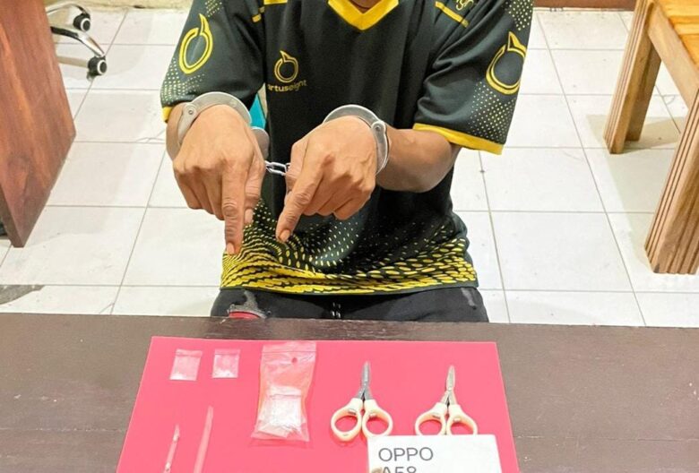 Dari hasil penggeledahan, ditemukan dua paket kecil berisi kristal putih yang diduga sebagai narkotika jenis sabu, dengan berat bruto mencapai 0,38 gram. Barang bukti tersebut ditemukan di dalam kotak telepon genggam merek Oppo A58 milik tersangka.