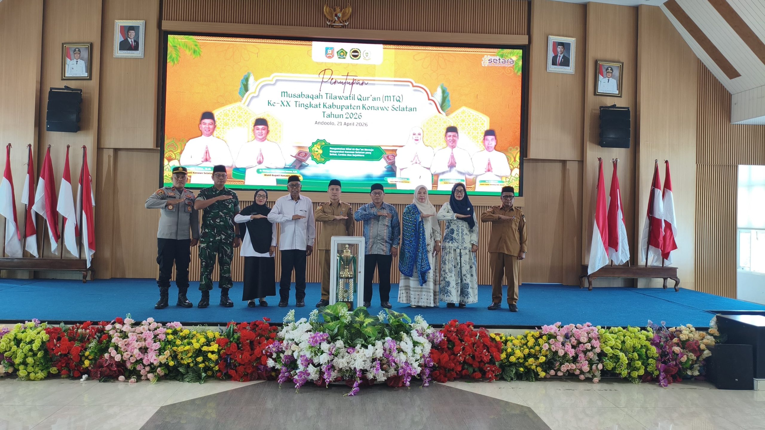Acara ditutup dengan penyerahan hadiah kepada para pemenang yang telah menunjukkan dedikasi luar biasa pada MTQ ke-XX tingkat Kabupaten Konawe Selatan.